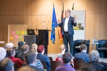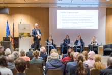 - ...und ein Gast aus dem Publikum (hier konnten sich Interessierte mit Fragen und Meinungen ins Podium einbringen)