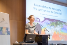 Anschließend gab Journalistin Dr. Susanne Götze mit ihrem Vortrag „Kommunikation der Katastrophe: Wie sprechen über die Klimakrise?“ Anstöße, die in der darauf folgenden Podiumsdiskussion aufgegriffen wurden. Dr. Susanne Götze machte uns klar, das Angst die Handlung der Menschen hemmt und man eher Sorge und Hoffnung durch die Kommunikation auslösen müsse, damit die Menschen handeln. Zsätzlich müsse man aufpassen, dass der Klimawandel nicht zur Spaltung der Gesellschaft führt. Es solle eher ein Gemeinschaftsprojekt werden.