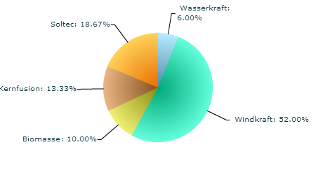 26. Ethanoleveryday 322289.60 98643.67 91958.84 102816.13 Kernkraft:0.00%, Kohle:0.00%, Gas:0.00%, Windkraft:52.00%, Soltec:18.67%, Fusion:13.33%, Wasser-