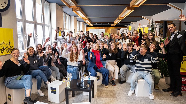 „Endlich lernen wir die Gesichter und Geschichten der zufällig ausgewählten Teilnehmer*innen kennen.“ Anna Buntzel und Julian Prietz, die Moderator*innen der Auftaktveranstaltung von betterLÄND freuen sich, wie vielfältig die Gruppe ist. Durch verschiedene Positionierungen im Raum zeigen die Teilnehmenden in der Kennenlernphase, woher aus Baden-Württemberg sie kommen, wie alt sie sind, welchen Bildungsweg sie gehen. Aber auch, ob sie Instagram oder TikTok bevorzugen, lieber Rad oder Auto fahren.