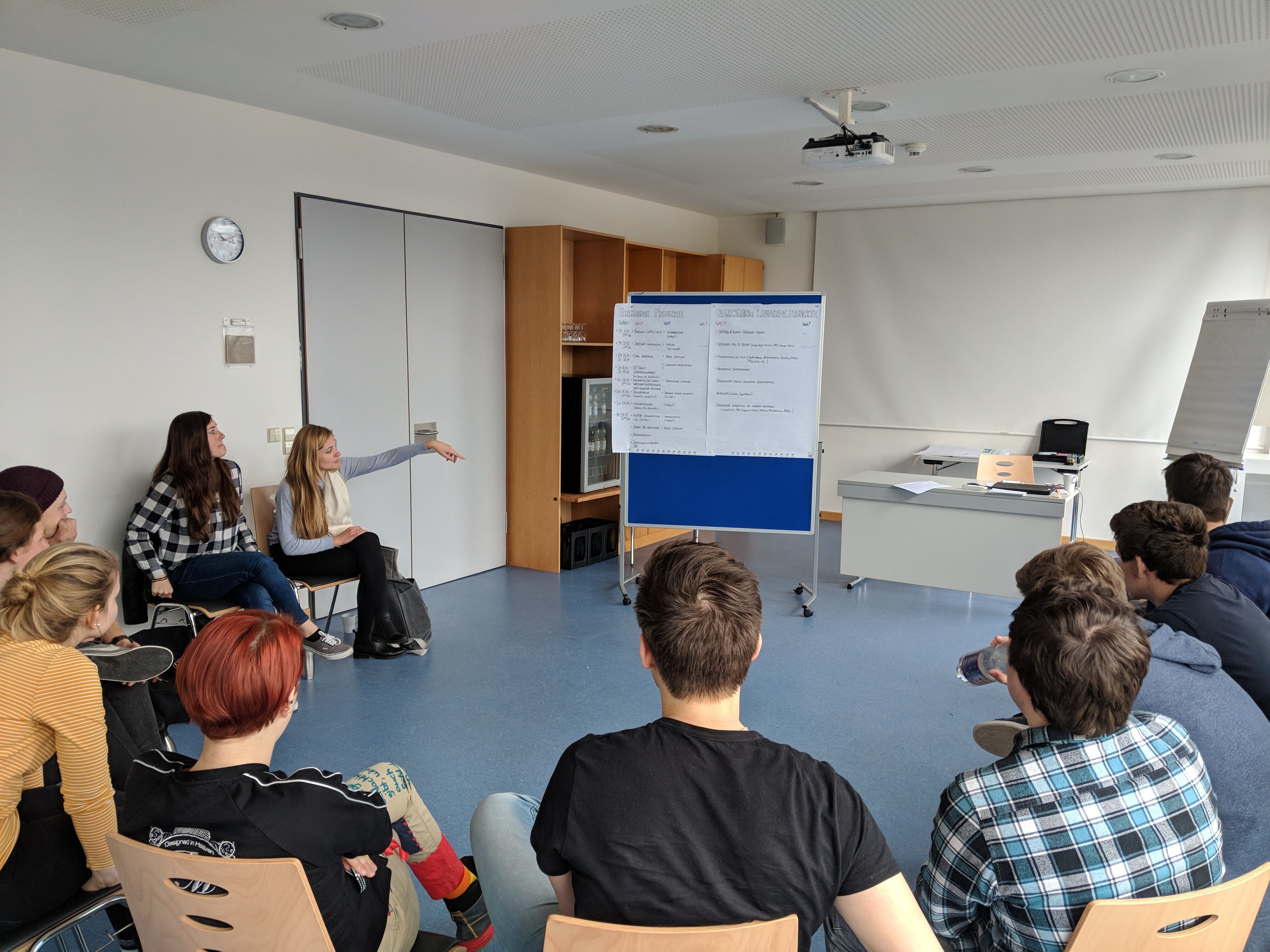 Am Sonntag gehen wir in den Endspurt. Im Open Space arbeitet jeder zu gewählten Themen. Die Gruppen widmen sich dem Besuch bei Schüler*innen und passenden Workshop-Formaten, dem Social-Media Projekt (Urlaub in Deutschland anstatt einer Fernreise soll promotet werden) und dem geplanten Instagram-Kanal für den Jugendbeirat. Die Ergebnisse werden präsentiert und es wird deutlich, dass viele gute Ideen entstanden sind.