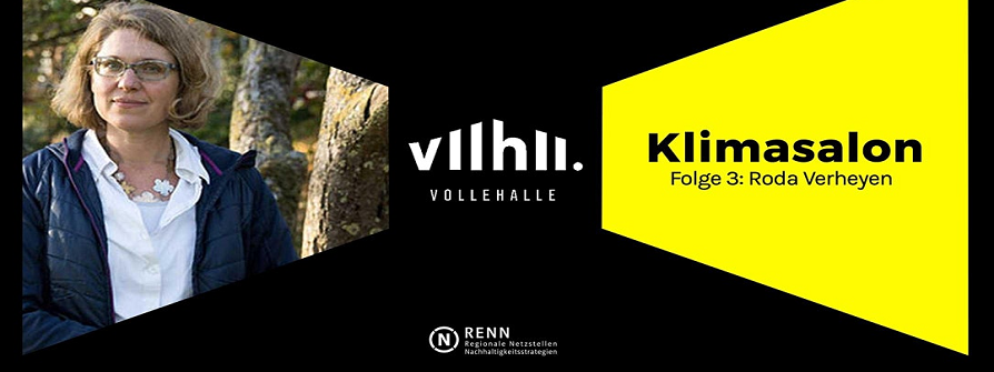 An vier Abenden im April findet der Klimasalon im Netz von vollehalle und RENN statt. Vollehalle ist ein Bühnenformat, in dessen Rahmen durch Theater, Medien und Vorträge positive Perspektiven im Umgang mit der Klimakrise aufgezeigt werden. RENN sind die Regionalen Netzstellen Nachhaltigkeitsstrategien, ein bundesweites Netzwerk zur Nachhaltigkeit.