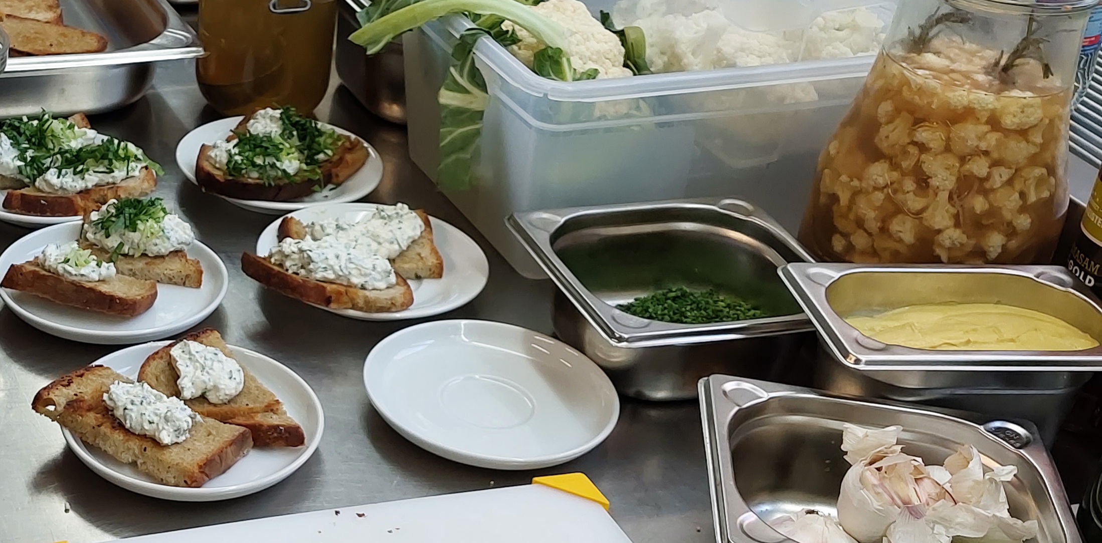 - geröstetes Vollkornbrot mit Frischkäse verfeinert mit unseren selbst gepflanzten Kräutern
