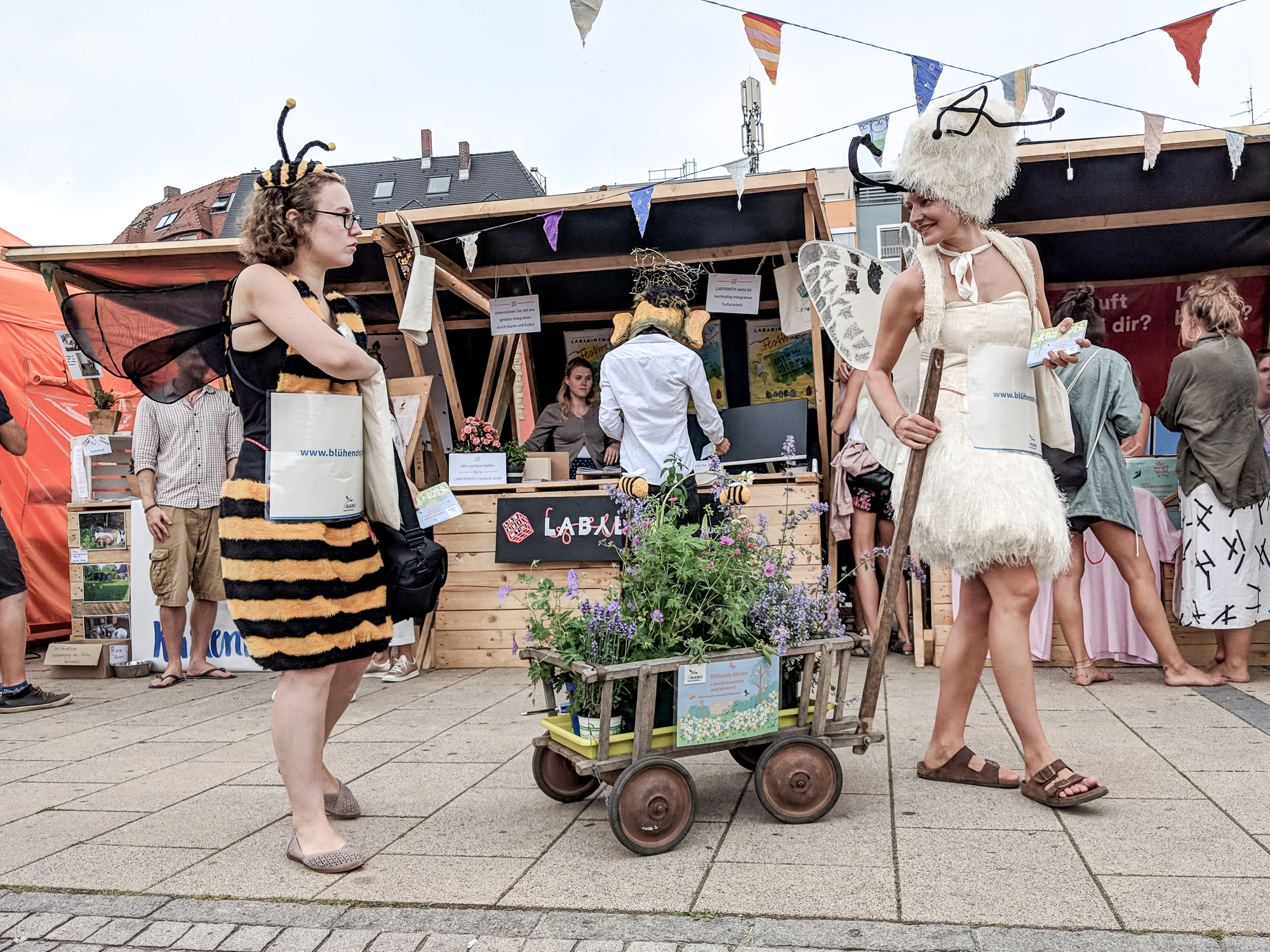 Insgesamt war die Stimmung auf dem Übermorgen-Markt fantastisch. Musik und jede Menge nette Besucher*innen und Ausstellende trugen ihren Teil dazu bei. – Wir freuen uns schon auf das nächste Jahr und bis dahin hoffen wir, dass die Wildblumen, die aus den gebastelten Samenbomben sprießen, die Stadt bis bunter und vielfältiger machen.
