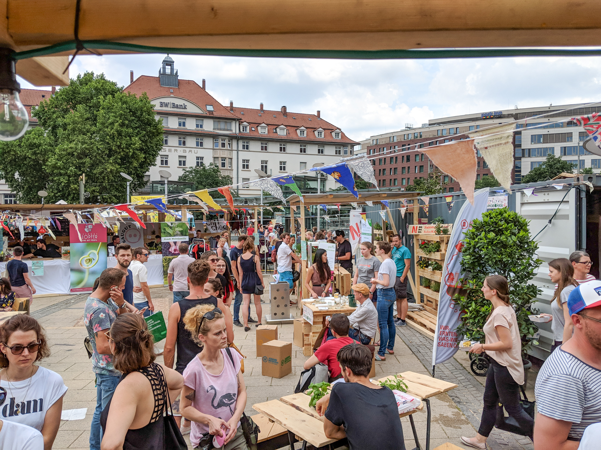 Vom 08. bis zum 10. Juni fand der dritte Übermorgen-Markt auf dem Marienplatz in Stuttgart statt. Über 60 regionale Initiativen stellten ihre Konzepte und Produkte für ein möglichst ökologisches und sozialverträgliches Leben vor.