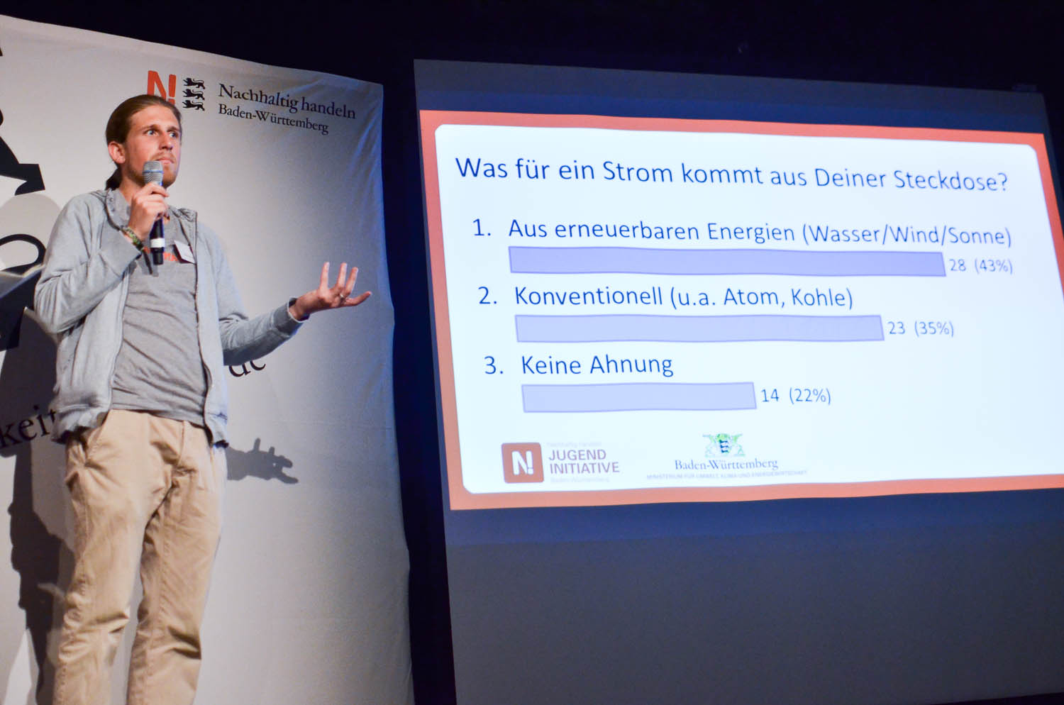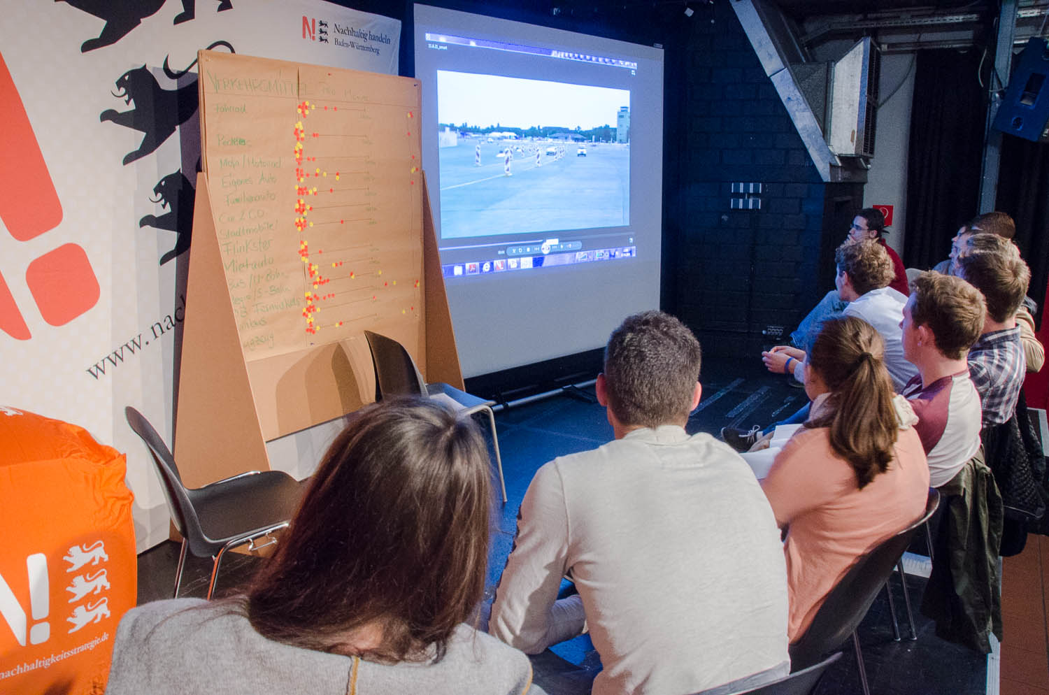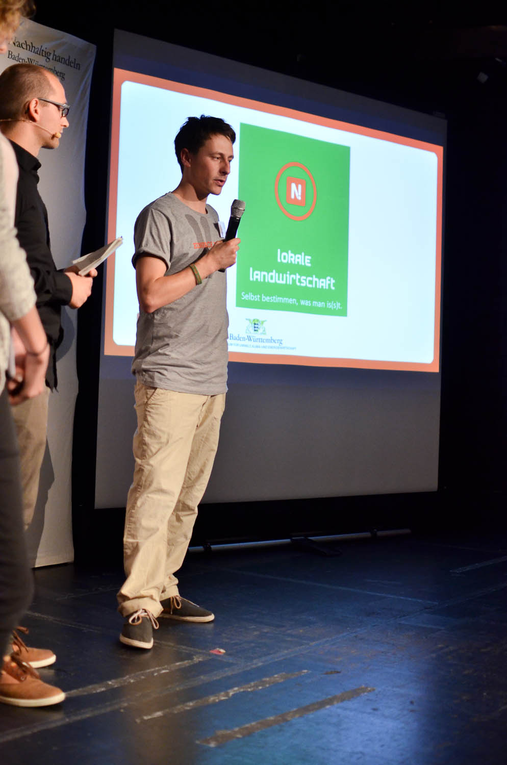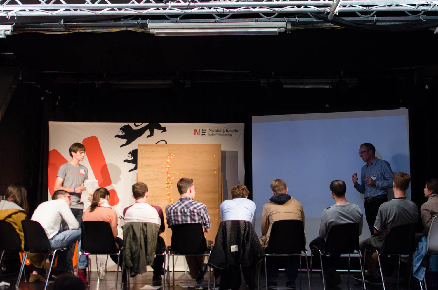 Bei der Abendveranstaltung hörten die KongressteilnehmerInnen und andere BürgerInnen erst den Wissenschaftler Prof. Dr. Niko Paech und seinen Vortrag zur Postwachstumsökonomie. Anschließend wurden die tagsüber erarbeiteten Workshop-Ergebnisse vorgestellt und gemeinsam mit dem Minister für Umwelt, Klima und Energiewirtschaft Franz Untersteller diskutiert.
