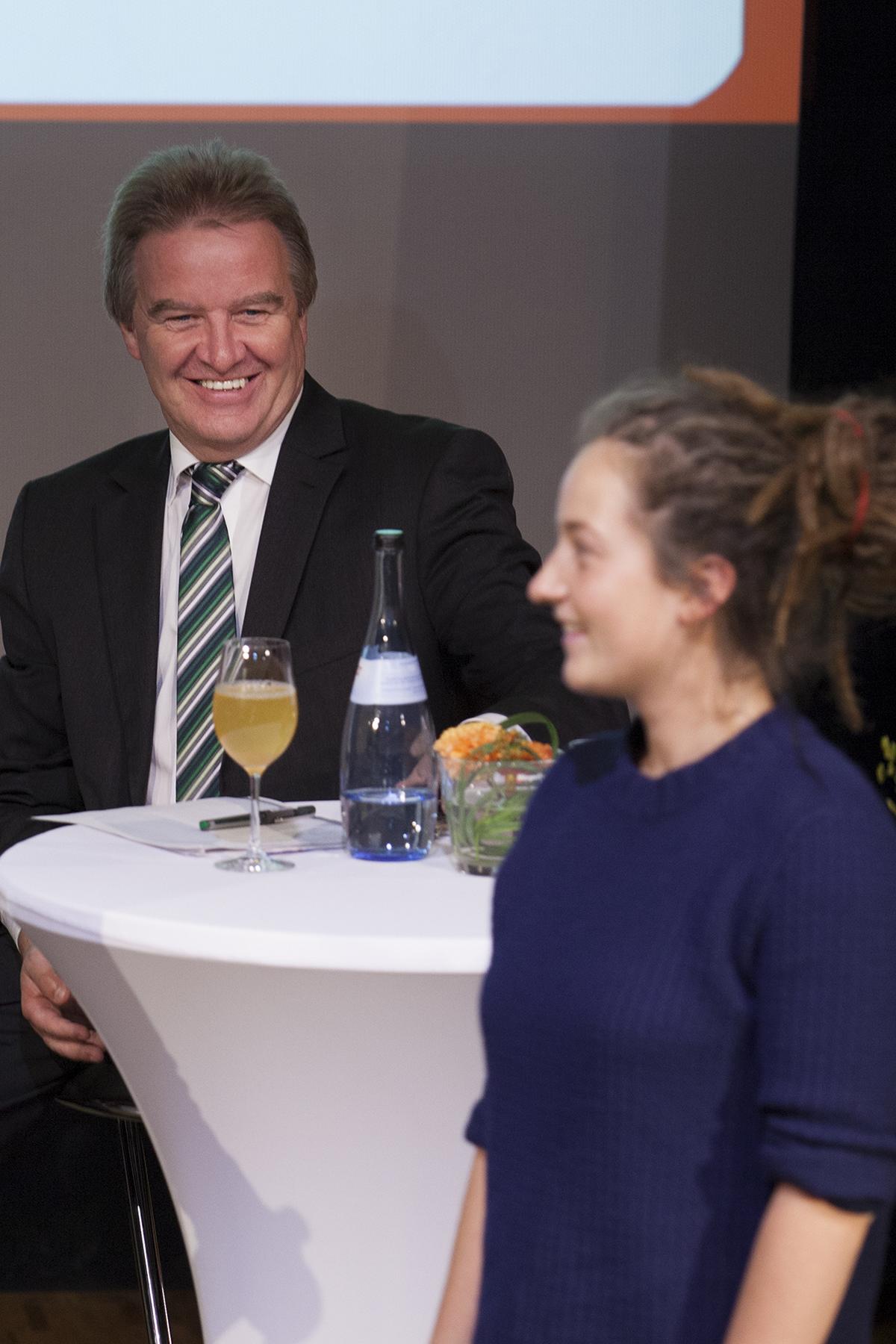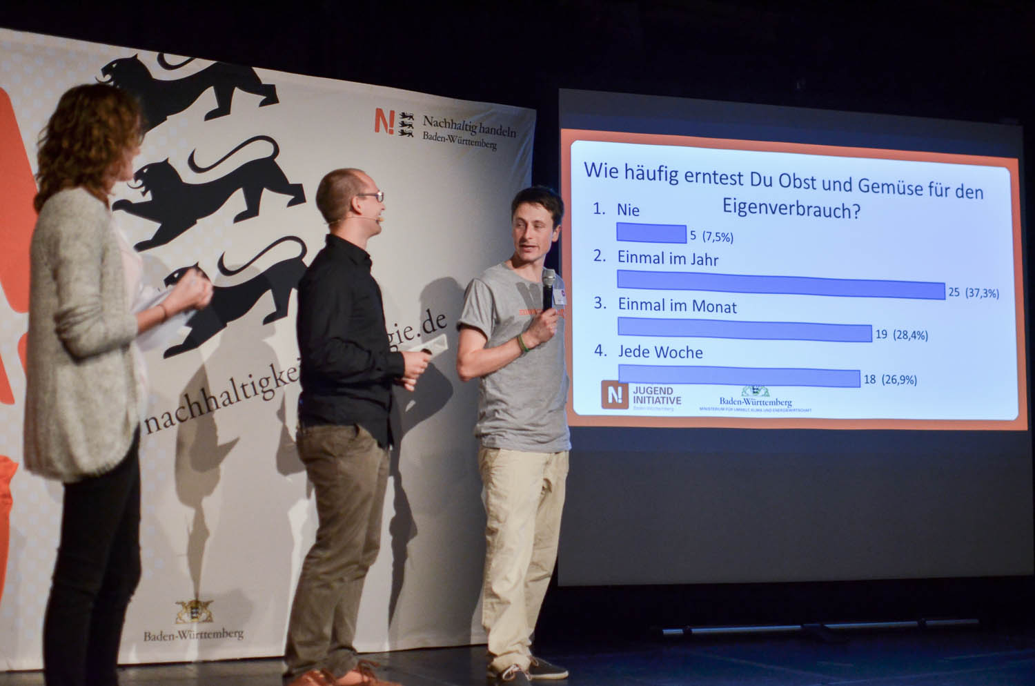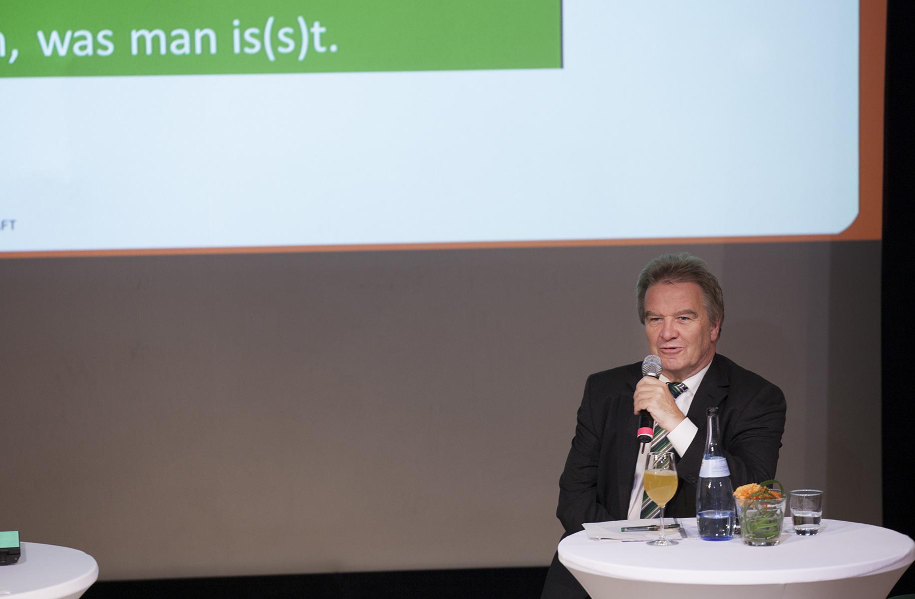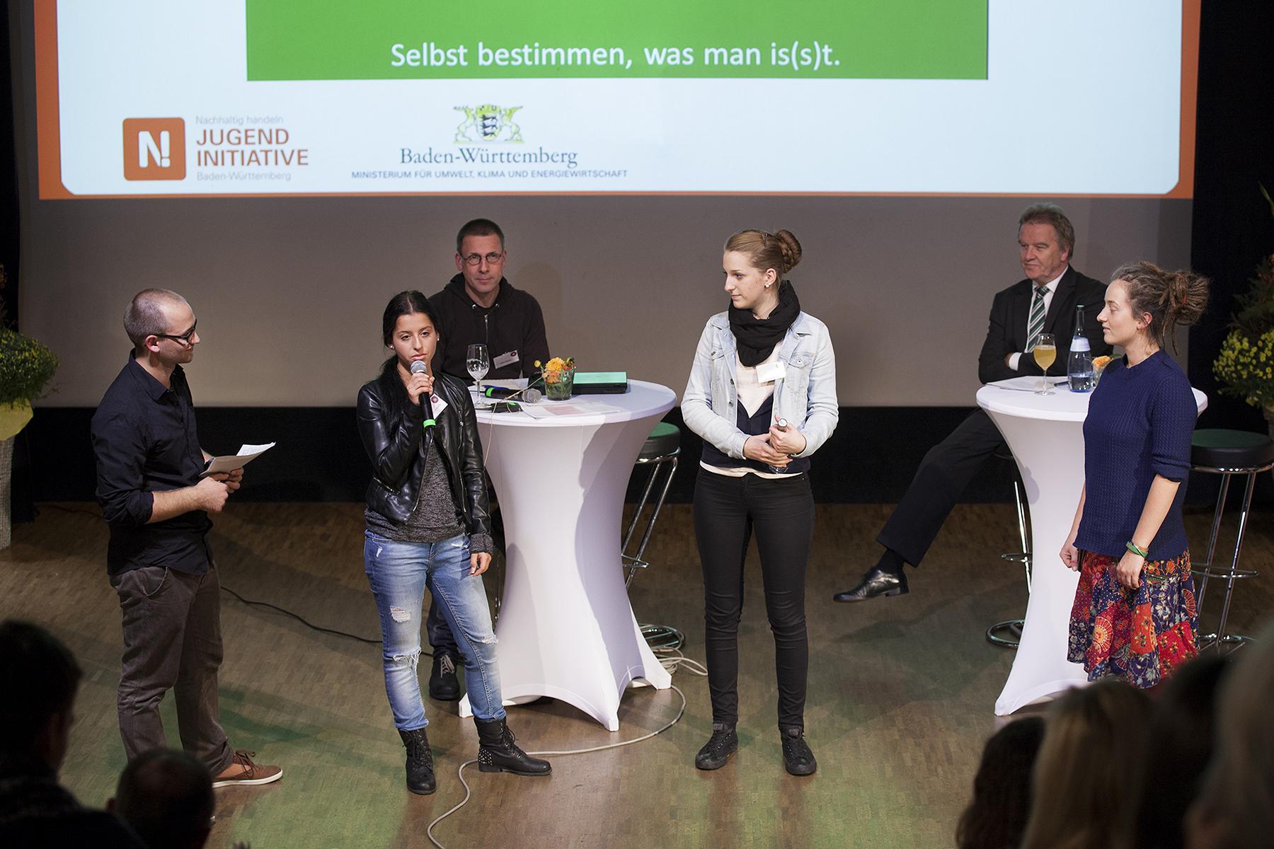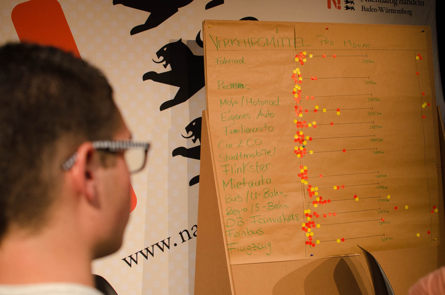 Bei der Abendveranstaltung hörten die KongressteilnehmerInnen und andere BürgerInnen erst den Wissenschaftler Prof. Dr. Niko Paech und seinen Vortrag zur Postwachstumsökonomie. Anschließend wurden die tagsüber erarbeiteten Workshop-Ergebnisse vorgestellt und gemeinsam mit dem Minister für Umwelt, Klima und Energiewirtschaft Franz Untersteller diskutiert.
