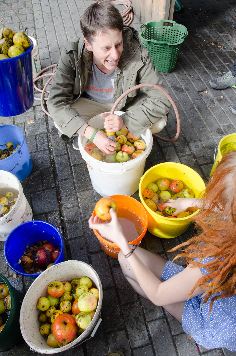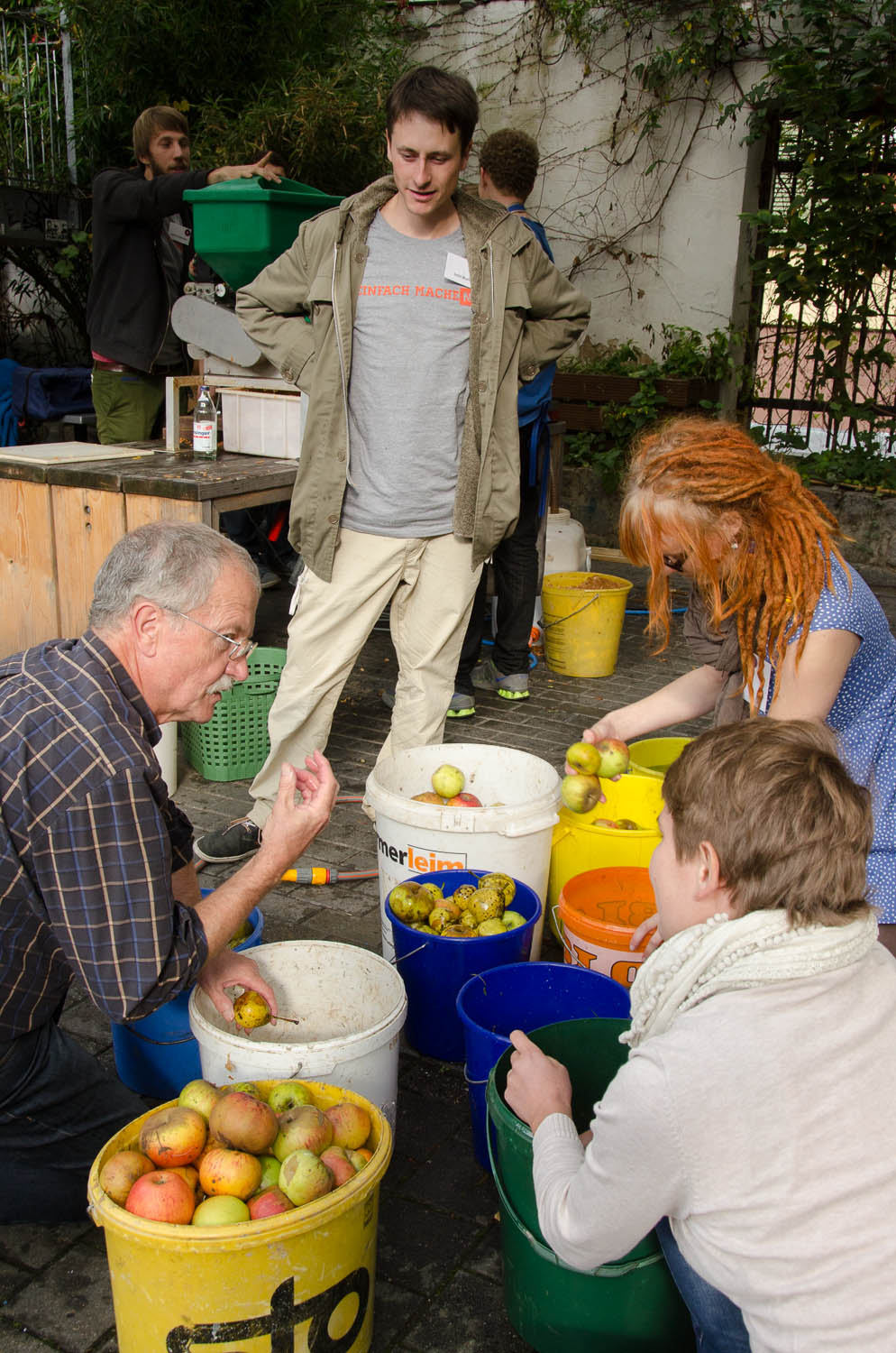 Selbst bestimmen, was man is(s)t: Ist BIO gleich BIO? Kann ich mit meinem Essverhalten Kulturlandschaften erhalten? Oft findet man Schmackhaftes direkt vor der eigenen Haustür, hergestellt von Menschen aus unserer Region. Wir haben die geschmackliche Vielfalt umliegender Streuobstwiesen kennengelernt und unseren eigenen Apfelsaft mit unserer mobilen Saftpresse gemacht. |