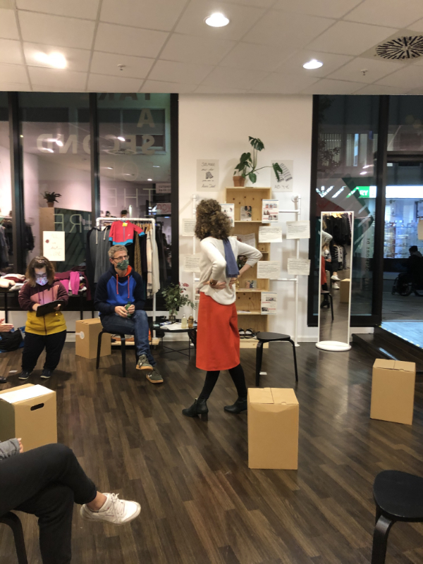 Daniel und Nadine sprachen über Herausforderungen, wie zum Beispiel qualitativ hochwertigen Bio-Stoff zu finden, vor allem aber auch über die schönen Momenten auf ihrem Weg: wenn Kund*innen mit perfekt sitzender Kleidung glücklich den Laden verlassen.