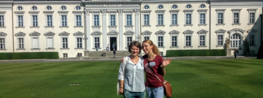Hoch motiviert marschierten wir am nächsten Morgen um 8 Uhr zum Schloss Bellevue. Dieses erstrahlte im Glanz der Sonne und so war nach dem Sicherheitscheck erstmal Fototermin angesagt. Einmal durchs Schloss durch und ab in den Garten! Dort war schon alles bereit: knapp 200 Aussteller präsentierten ihre Ideen und Projekte für eine nachhaltigere Zukunft. So sprachen wir mit „Rapunzel“ über faires und ökologisches Palmöl, berechneten unseren virtuellen Fußabdruck und stimmten mit der „atmosfair“-Vertreterin darüber ein, dass leider noch viel zu wenige Passagiere ihren Flug kompensieren. Natürlich sammelten wir auch fleißig Kugelschreiber, Infomaterialien und faire Schokolade, welche aufgrund des Wetters unverzüglich verspeist werden musste J. Um 11 Uhr eröffnete der Bundespräsident feierlich die Veranstaltung. Danach hatte die „Jugend“ das Wort. Drei junge Studenten präsentierten ihre Vorstellung von einer nachhaltigen Zukunft, warben für mehr Möglichkeiten der Jugendbeteiligung und eröffneten die Kampagne #selfmadefuture (http://selfmadefuture.net/). Ziel der Kampagne ist es, 100 Millionen Menschen in 193 Ländern der Erde zu fragen, wie sie die Welt besser machen und diese Statements in Bild- oder Videoform festzuhalten. Nachdem die Jugendlichen die Frage „Wie machst du die Welt besser?“ beispielhaft und vorbildlich mit „Ich werfe kein Essen weg und gehe ab und zu foodsharen“ beantworteten, war natürlich der Bundespräsident dran! Seine sehr erheiternde Antwort ist hier zu sehen: https://vimeo.com/169697947.